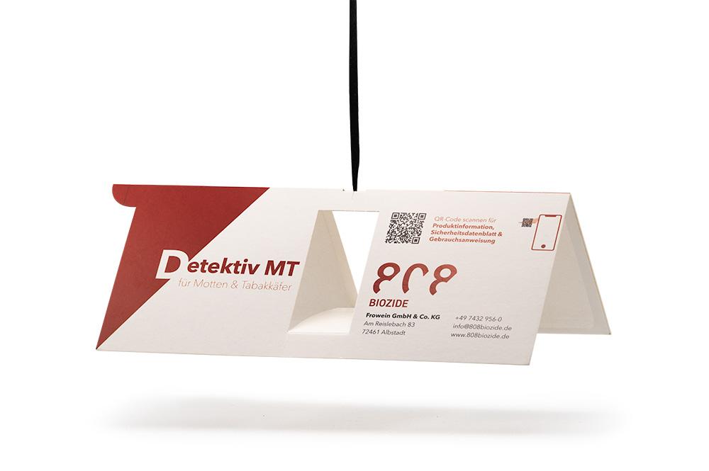 Klebefalle in Deltaform zum Erkennen, Lokalisieren und Überwachen von Mottenfaltern und flugaktiven Käfern.
