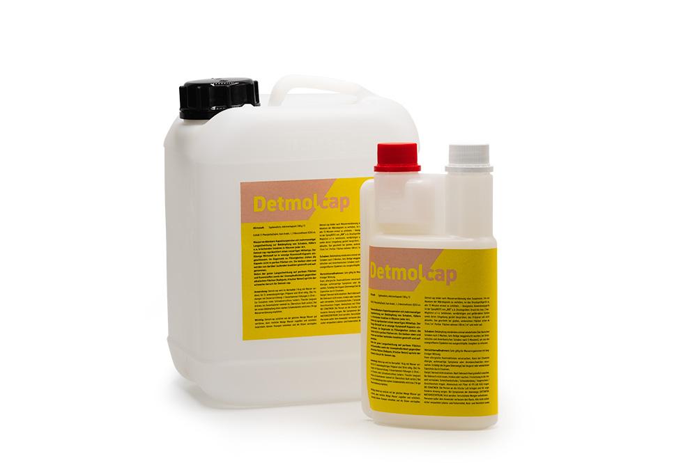 Detmol-cap wirkt durch Kontakt mit dem Sprühbelag und außerdem als Fraßgift durch Aufnahme der Mikrokapseln beim Putzakt. Langzeitwirkung von 3 - 4 Monaten auf allen Flächen.