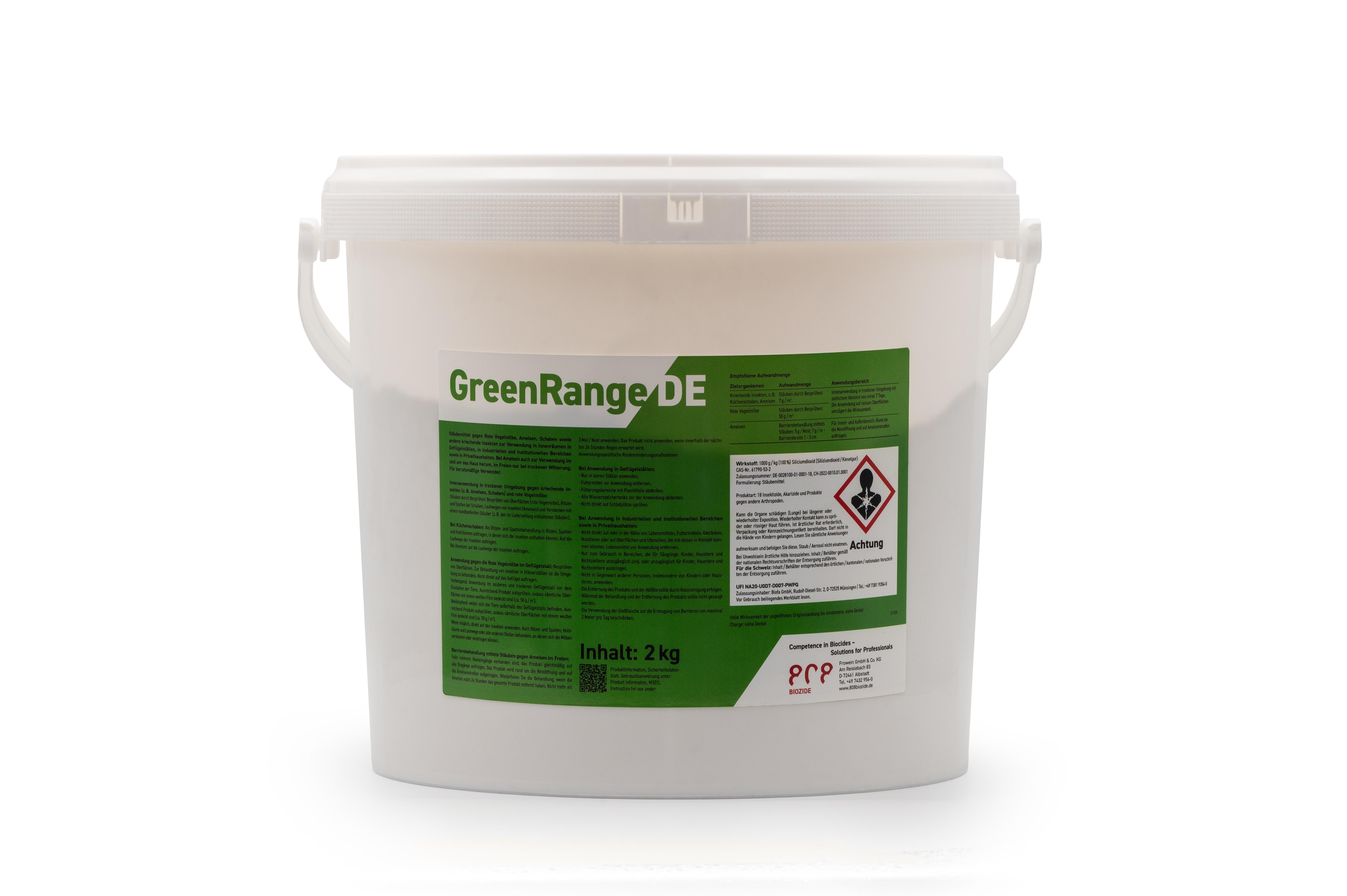 GreenRange DE besteht zu 100 % aus Siliciumdioxid/Kieselgur (auch Diatomeenerde genannt). Der Wirkstoff besteht aus Schalen fossiler Kieselalgen, einer natürlich vorkommenden Form von amorphem (nicht-kristallinem) Siliciumdioxid. Der Wirkstoff führt zum Herauslösen von Kutikulafetten und zur Dehydrierung der Insekten. Die Schädlinge sterben nach wenigen Stunden ab.